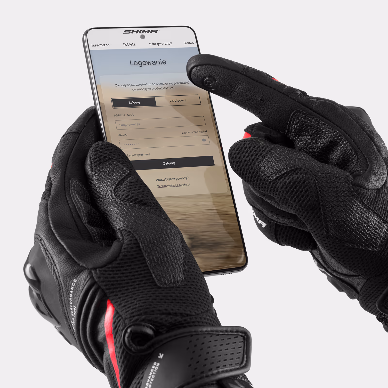 Rękawice motocyklowe certyfikowane zgodnie z normą EN 13594:2015, spełniające wymagania kategorii 2 z ochroną kostek na poziomie KP1